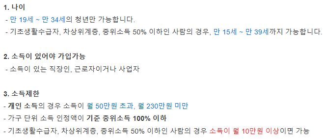 목돈 마련에 아주 좋은 이 청년내일저축계좌 누가 가입할 수 있을까요? 아래 내용과 같이 나이, 소득 기준이 맞아야 가입이 가능합니다.